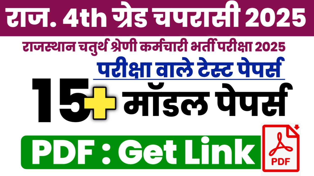 Dear, Students आज की इस पोस्ट में आपको राजस्थान चतुर्थ श्रेणी कर्मचारी परीक्षा 2025 के लिए 15+ मॉडल पेपर की PDF उपलब्ध करवाई गई है, जो आपकी 2025 की परीक्षा के लिए बहुत ही महत्वपूर्ण रहने वाली है, , तो आप इन पेपर PDF’s को डाउनलोड करें और अपने मित्रो के साथ शेयर करें | – Rajasthanclasses.in