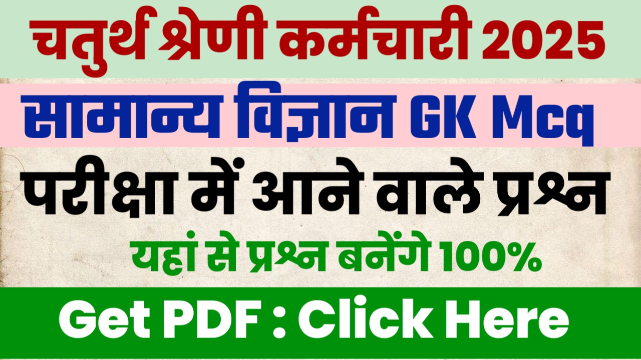 👉 चतुर्थ श्रेणी कर्मचारी के लिए सामान्य विज्ञान Gk Mcq की लिंक नीचे दी हुई है —-
